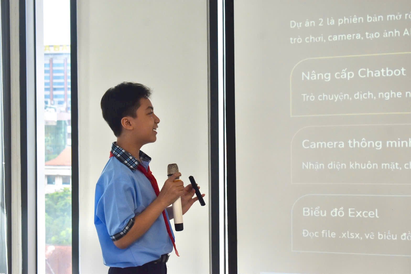 Học sinh tự tin thuyết trình dự án AI trước lớp trong khuôn khổ khóa bồi dưỡng kiến thức về trí tuệ nhân tạo do Sở Khoa học và Công nghệ TP.HCM tổ chức