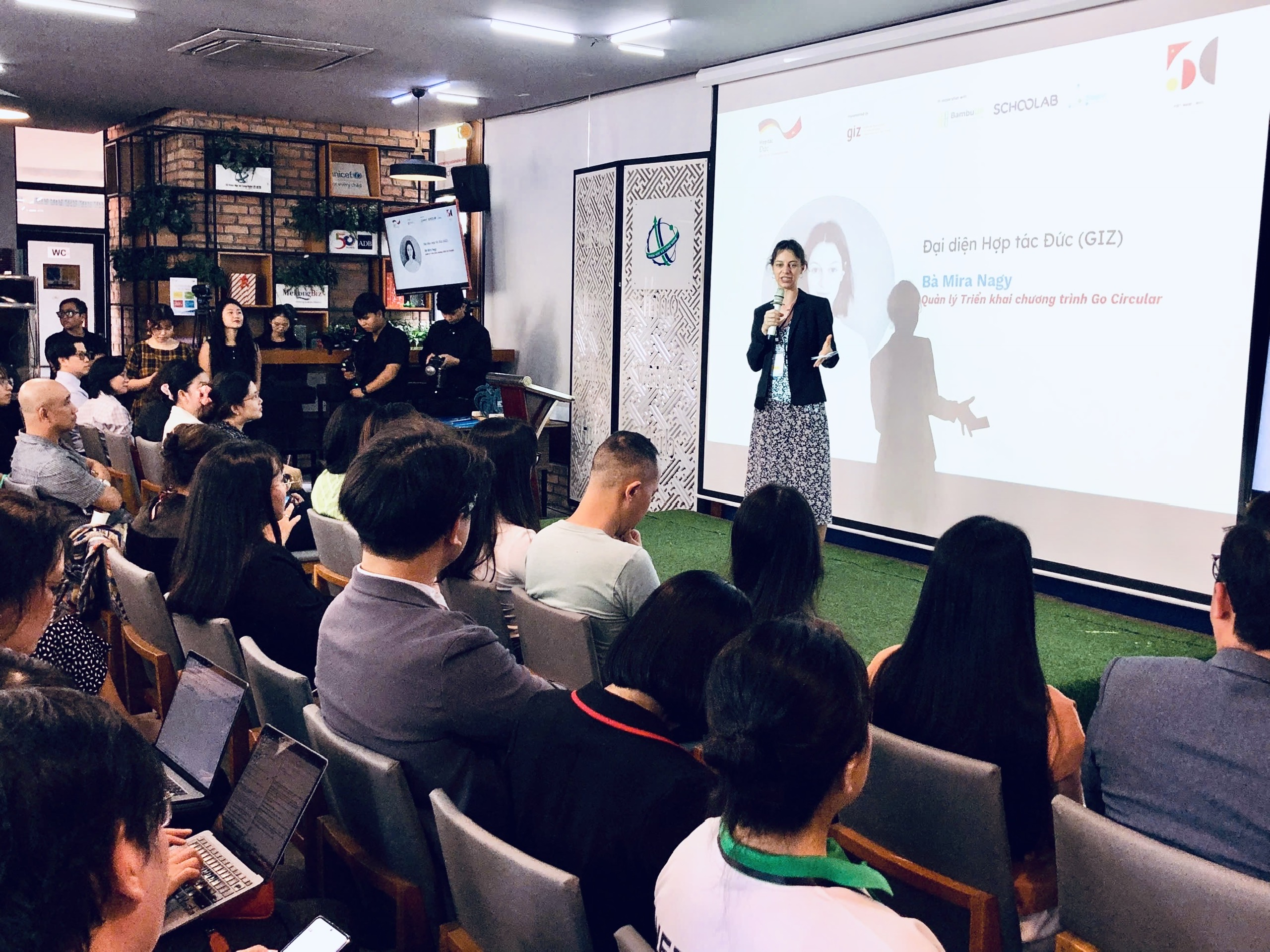 Bà Mira Nagy - Đại diện Hợp tác Đức (GIZ) kiêm Quản lý Triển khai chương trình Go Circular phát biểu tại sự kiện