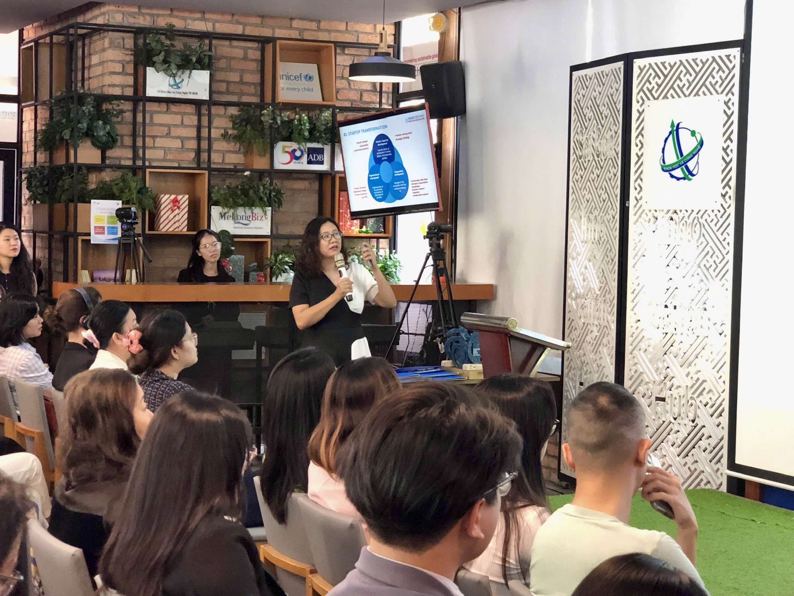 Bà Phan Thị Quý Trúc - Phó Trưởng phòng Phòng Sở hữu trí tuệ và Đổi mới sáng tạo, Sở Khoa học và Công nghệ TP.HCM đặt câu hỏi cho các dự án