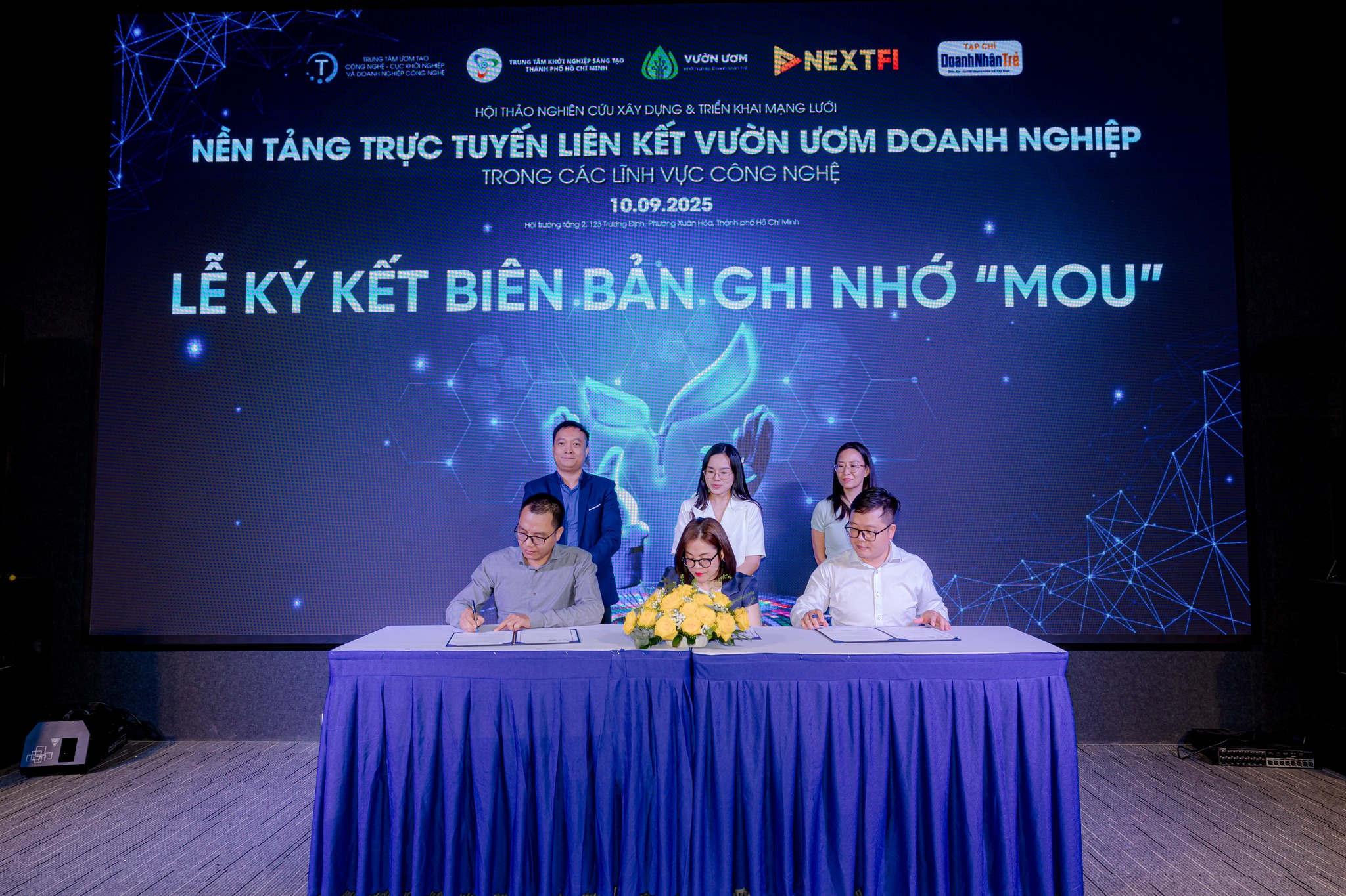 Đại diện Trung tâm Ươm tạo Công nghệ, Vườn ươm Khởi nghiệp Doanh nhân Trẻ và Trung tâm Khởi nghiệp sáng tạo TP.HCM ký kết Biên bản ghi nhớ hợp tác (MOU) trong khuôn khổ Hội thảo ‘Nền tảng trực tuyến liên kết vườn ươm doanh nghiệp