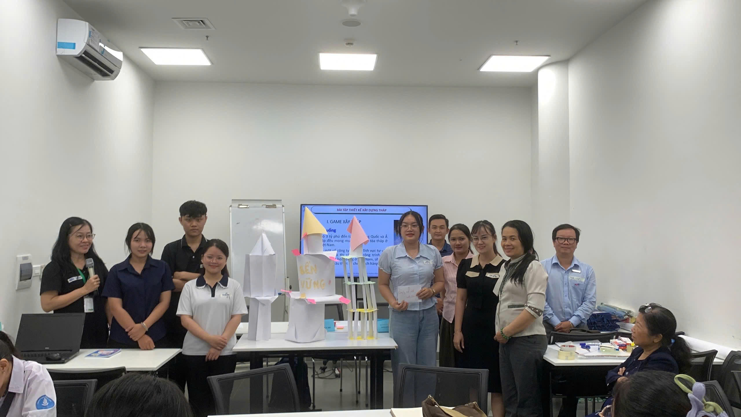- Ngày 1 – Xây dựng Nền tảng: Dưới sự hướng dẫn của ThS. Nguyễn Thị Hồng Thủy, các học viên được hệ thống hóa kiến thức cơ bản về xây dựng sản phẩm mẫu (MVP), phát triển ý tưởng kinh doanh và phân tích giá trị cốt lõi. Đặc biệt, hoạt động trải nghiệm trò chơi xây tháp sáng tạo đã giúp các nhóm rèn luyện tư duy hệ thống, khả năng phản ứng nhanh và tinh thần làm việc nhóm.